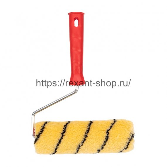 Валик полиакрил желтый с черной полосой, ворс 11 мм, ширина ролика 180 мм, бюгель 6 мм, ? 42 мм REXANT