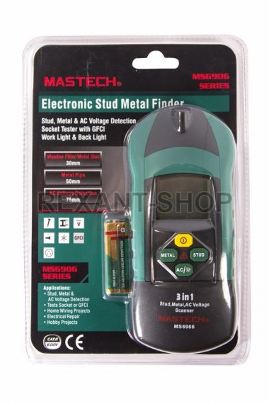 Mastech MS 6906 это многофункциональный прибор, включающий в себя большой набор возможностей. Предназначен для поиска металла, переменного напряжения, а так же скрытых конструкций. С его помощью вы сможете обнаружить винты, гвозди, саморезы, шпильки, иголки и другие металлические предметы на глубине до 30 мм, металлические трубы на глубине до 50 мм и напряжение на глубине до75 мм. Результаты поиска отражаются на дисплее прибора и обозначаются с помощью звукового сигнала. Прибор окажется незаменим при ремонтных работах, на строительных площадках и даже дома, в быту. С его помощью вы сможете обнаружить даже неисправную проводку, и при ремонте вам не придется ломать всю стену. Вы сможете найти затерявшуюся иголку или гвоздь, которые могли провалиться в щели между досками. И многое другое. Прибор изготовлен из высококачественных материалов и имеют эргономичный дизайн. Калибровка и тестирование приборов произведено под контролем компании REXANT INTERNATIONAL.