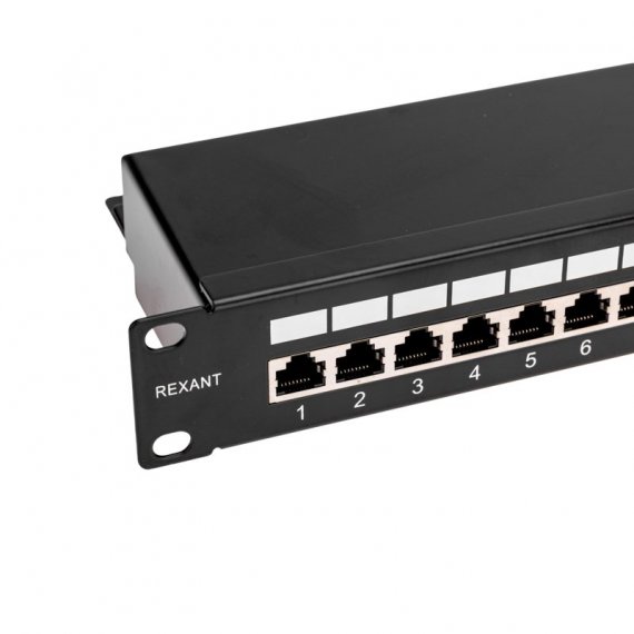 Панель коммутационная 19", 1U, 24 порта, STP, RJ-45, CAT 5e REXANT PRO