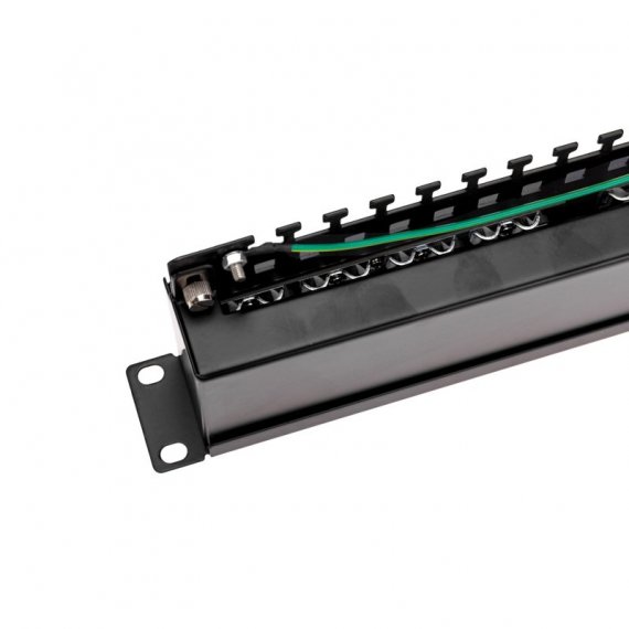 Патч-панель монтируется в стойку 19''. Выполнена из высококачественных прочных материалов.