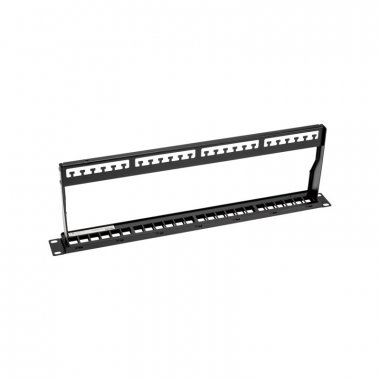 Содержит 24 порта: позволяет совмещать в своем корпусе разъемы разных видов (Keystone, RJ45 и т. д) и категорий (5е,6 и т. д).