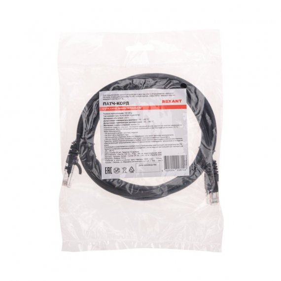 Патч-корд U/UTP, CAT 5e, RJ45-RJ45, 26AWG, LSZH, черный, 2м REXANT