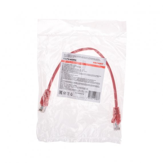 Патч-корд U/UTP, CAT 5e, RJ45-RJ45, 26AWG, LSZH, красный, 0,3м REXANT