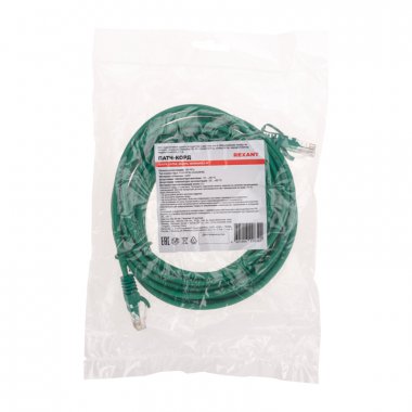 Наименование | Патч-корд U/UTP, CAT 5e, RJ45-RJ45, 26AWG, LSZH, зеленый, 1м REXANT |