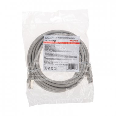 Патч-корд F/UTP, CAT 5e, RJ45-RJ45, 26AWG, LSZH, серый, 5м REXANT