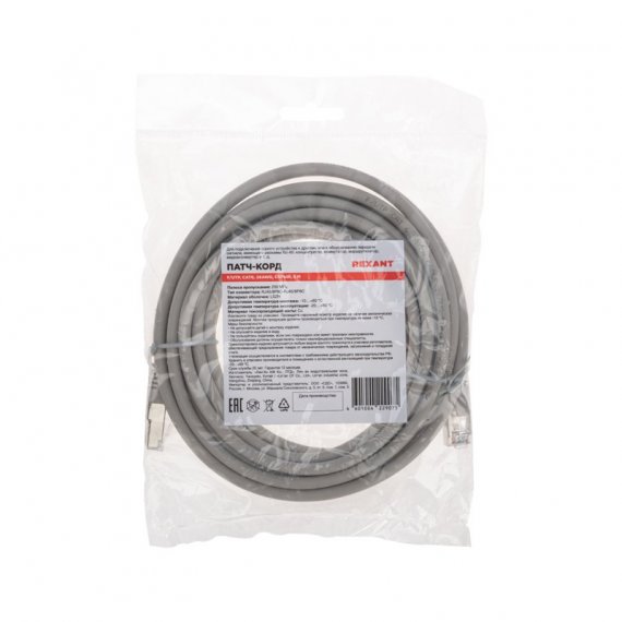 Патч-корд F/UTP, CAT 6, RJ45-RJ45, 26AWG, LSZH, серый, 5м REXANT