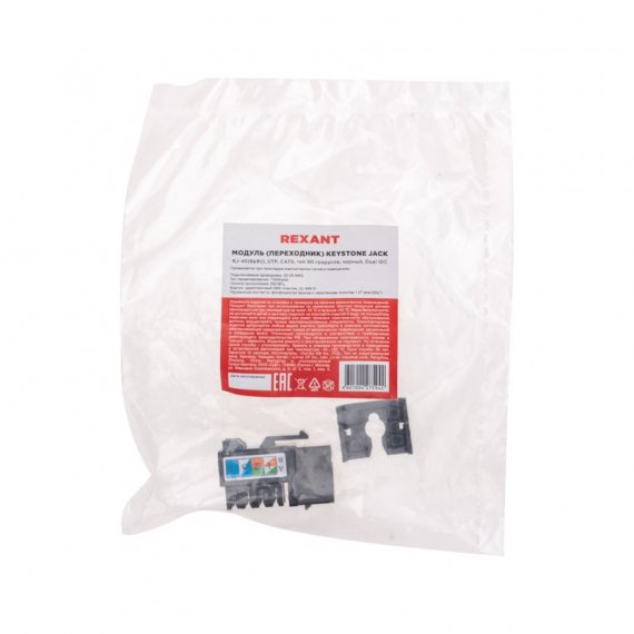 Модуль Keystone Jack RJ-45(8P8C), UTP неэкранированный, CAT 6, тип 90 градусов, черный REXANT PRO