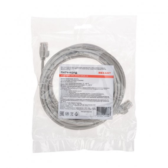 Патч-корд REXANT соответствует международным стандартам ISO/IEC 11801, TIA/EIA-568, EN 50173.