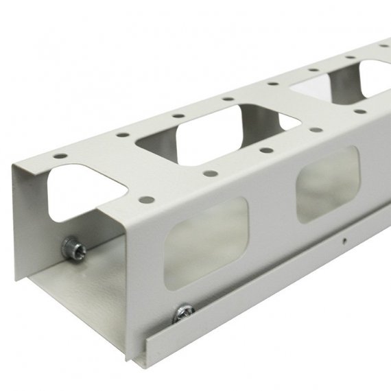Вертикальный кабельный органайзер 47U шириной 100 мм предназначен для укладки излишек кабелей. Размещается в шкафах шириной 800 мм посередине двух вертикальных направляющих. Позволяет упорядочить размещение шнуров и избежать образования петель и заломов.