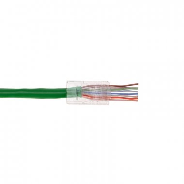 Фиксация разъема на кабеле производится специальным обжимным инструментом. Сквозные отверстия упрощают и ускоряют монтаж, минимизируя ошибки, возникающие при подключении.