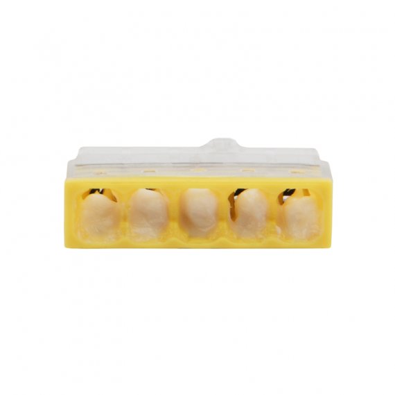 Компактный прозрачный корпус удобен для контроля соединения, а яркая цветовая разметка способствует визуальному различию клемм по количеству проводников.