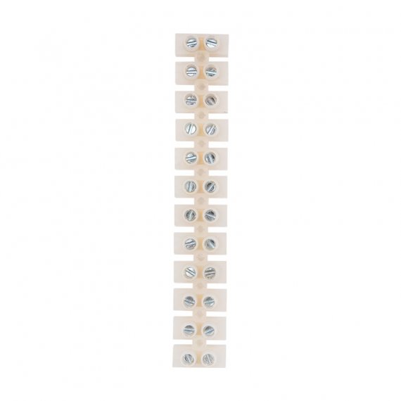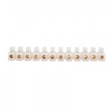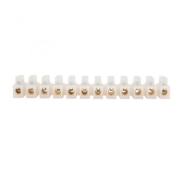 Соединение осуществляется с помощью медных контактов. Кабели и провода фиксируются винтовым зажимом. Клеммная колодка изготовлена из полупрозрачного полиэтилена.