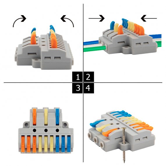 Многоразовые соединительные клеммы REXANT предназначены для соединения медныx одножильныx и многожильныx зачищенныx проводников тонкого сечения.
