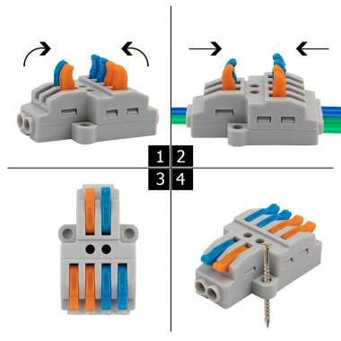 Многоразовые соединительные клеммы REXANT предназначены для соединения медных одножильных и многожильных зачищенных проводников тонкого сечения.