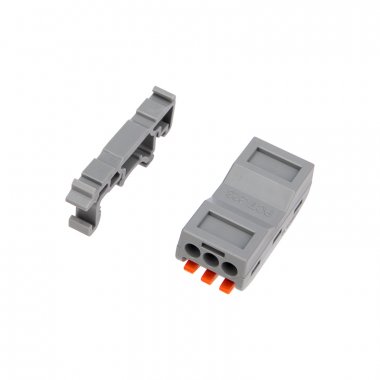 Клемма СМК 222-423D проходная 3-полюсная, с креплением на DIN-рейку (0,08-4 мм?), серая (5 шт./уп.) REXANT