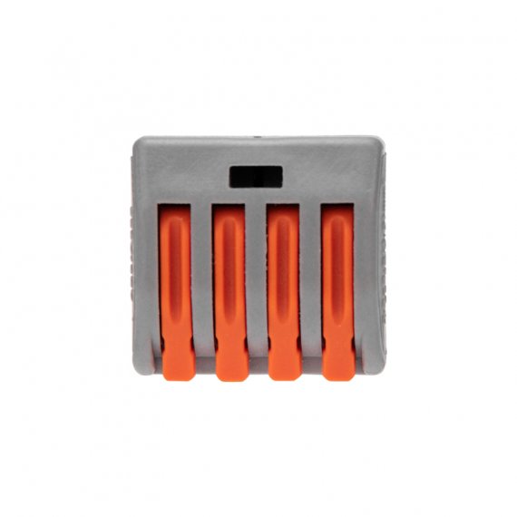 Соединительная многоразовая клемма REXANT на 4 проводника с плоско-пружинным зажимом предназначена для подсоединения медных одножильных и многожильных зачищенных проводников тонкого сечения.