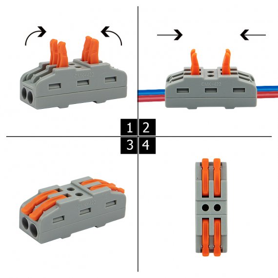 Многоразовые сквозные двухпроводные клеммы REXANT предназначены для соединения медных одножильных и многожильных зачищенных проводников тонкого сечения. Контакт осуществляется путем зажима проводника пластиной. Конструкция предотвращает случайное размыкание контакта. Специальное технологическое отверстие на корпусе клеммы предназначено для проверки соединения тестером-пробником или щупом мультиметра. Корпус из пластика делает контакт изолированным.