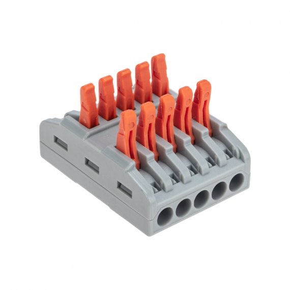Соединительная проходная многоразовая клемма REXANT с плоско-пружинным зажимом предназначена для подсоединения медных одножильных и многожильных зачищенных проводников.