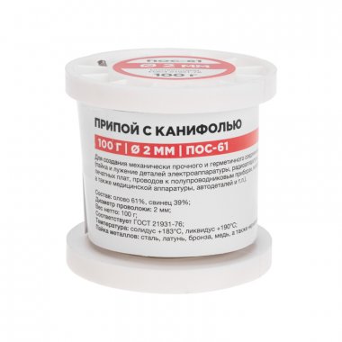 Припой с канифолью ПОС-61, 100г, ?2мм, (олово 61%, свинец 39%), катушка REXANT