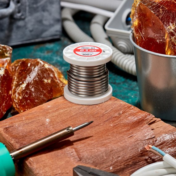Припой с канифолью ПОС-61 используется для создания прочного и герметичного соединения деталей и их фиксации на плате.