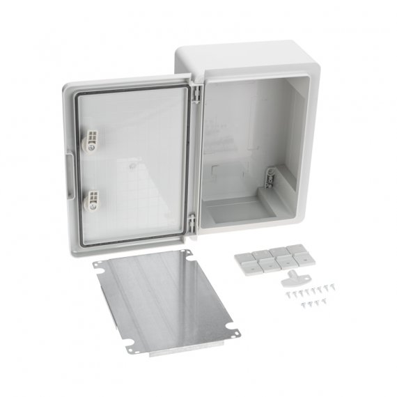 Корпус пластиковый ЩМПп с монтажной панелью предназначен для сборки разнообразных электрощитов: силовых, управления и автоматики. Позволяет производить монтаж аппаратуры как модульного, так и обычного исполнения, до 400 В. Степень пылевлагозащиты IP65 достигается за счет резинового уплотнения и допускает установку изделия в неблагоприятных условиях; защищает устройство от любых негативных воздействий окружающей среды (пыль и влажность). Доступны исполнения с серой и прозрачной дверцей. В комплектацию входит оцинкованная монтажная панель (не подвержена коррозии), ключ, кронштейны и набор винтов для крепления.