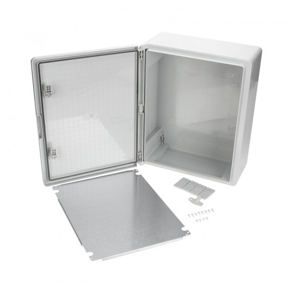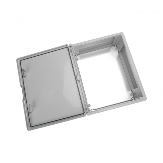 Корпус пластиковый ЩМПп с монтажной панелью 500х400х240мм ABS УХЛ1 IP65 REXANT Корпус пластиковый ЩМПп IP 65 с монтажной панелью предназначен для сборки разнообразных электрощитов: силовых, управления и автоматики. Позволяет производить монтаж аппаратуры как модульного, так и обычного исполнения, до 400В. Доступны исполнения с серой и прозрачной дверцей. В комплектацию входит оцинкованная монтажная панель, ключ, кронштейны и набор винтов для крепления. Максимальная степень защиты от пыли и влаги за счет резинового уплотнения. Благодаря усиленному корпусу, выполненному из ударопрочного ABS пластика, стойкого к УФ-лучам, отсутствует необходимость в заземлении корпуса и обеспечивается возможность использования в системе АСКУЭ. Технические характеристики: Вид установки – навесной. Материал корпуса: АБС-пластик Цвет: серый RAL 7035 Степень защиты: IP65 Ударопрочность: IK10 Статическая нагрузка: 38 кг Рабочая температура: –45...+85 °С Размеры (ВхШхГ): 500х400х240мм
