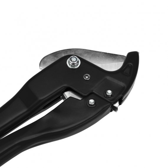 Оснащен храповым механизмом для уменьшения усилий сжатия рукояток. Пружинный механизм взвода ручек трубореза в рабочее положение обеспечивает быстроту и удобство работы.