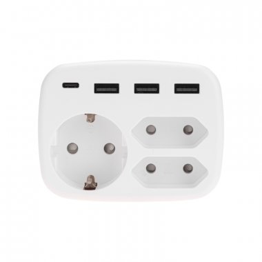 Многофункциональный электрический тройник с быстрой зарядкой - это удобное и стильное устройство, позволяющее подать питание от одной сетевой розетки сразу на три электроприбора 220-250 В (с одной стандартной Евро-вилкой и два прибора с узкой вилкой: бра, торшеры, ночники) и одновременно 4 USB-разъема питания для зарядки портативных устройств. Идеально подходит для бытовой техники: кофемашины, тостера, электрической зубной щетки, фена, а также и для мобильного телефона, наушников и т.д.