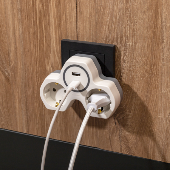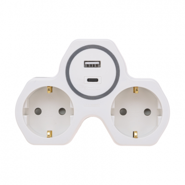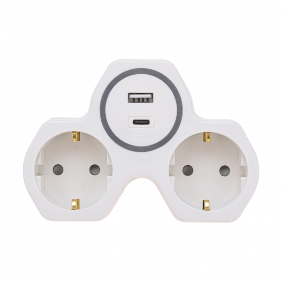 Электрический двойник (разветвитель) REXANT позволяет одновременно подключать к электрической сети с напряжением 220В два прибора со стандартными вилками, а также два прибора с разъемами USB-A и USB-С с максимальной мощностью 2,4А.