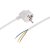 Провод ПВС сечением 3х0,75 мм² номинальным током 10 А с подготовленными (зачищенными) контактами укомплектован литой неразборной угловой вилкой (Евро).