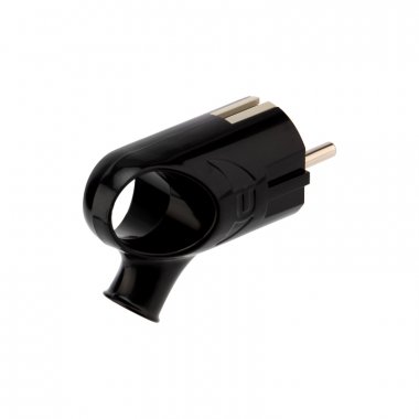 Вилка Евро угловая с з/к 16А с кольцом черная REXANT