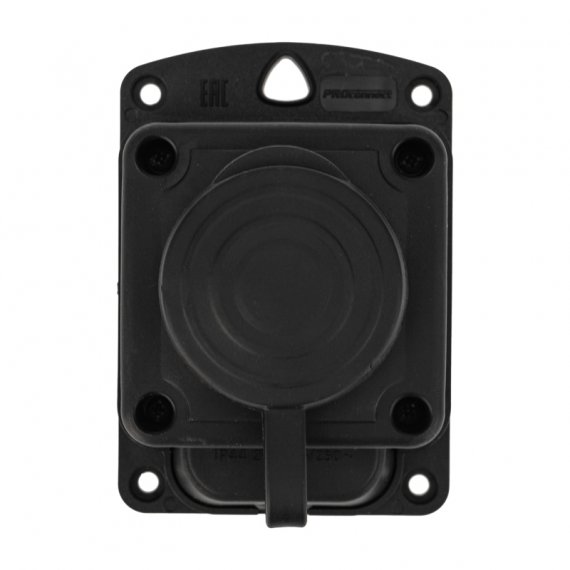 Розетка каучуковая 1 гнездо с крышкой черная, с/3, 16А, IP44, PROconnect