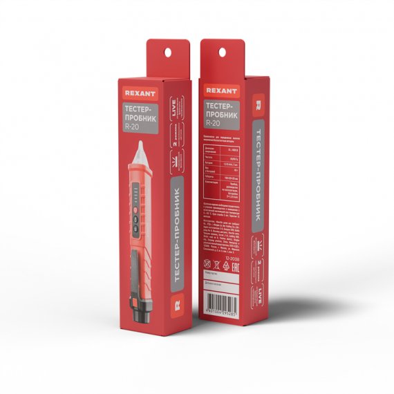 Тестер-пробник R-20 REXANT Тестер напряжения R-20 REXANT позволяет определить наличие напряжения контактным и бесконтактным методом. Современный и простой в использовании прибор с чувствительным датчиком напряжения, безопасным диэлектрическим корпусом из ударопрочного пластика и удобной клипсой для крепления тестера на карман, ремень или сумку монтажника. Тестер бесконтактным методом определяет наличие переменного напряжения в сети от 12 до 1000 В. Позволяет определить напряжение в кабелях, определить фазу, определить скрытую проводку и обрыв провода. Также прибор удобен для проверки качества электромонтажных работ и для поиска неисправностей в сети. Прибор оснащен встроенным фонариком, который может быть включен без включения тестера. Имеет понятные световые индикаторы красного и зеленого цветов. Обнаруживает переменное напряжение в диапазоне от 12 до 1000 В. Для удобства использования оснащен звуковым сигналом и обозначением уровня сигнала на шкале. На корпусе располагается кнопка изменения чувствительности датчика. За счет полностью бесконтактного метода работы тестер гарантирует полную безопасность пользователя. Батарея: 1,5 B AAA, 2 шт. Вес с батареей: 45 г Габариты: 156х20х20 мм