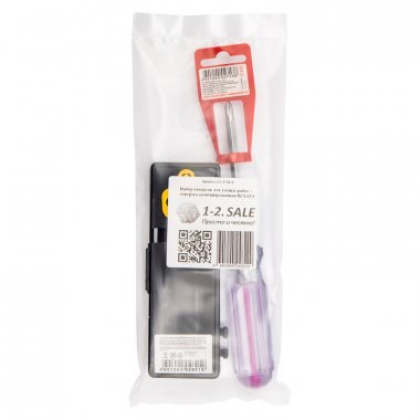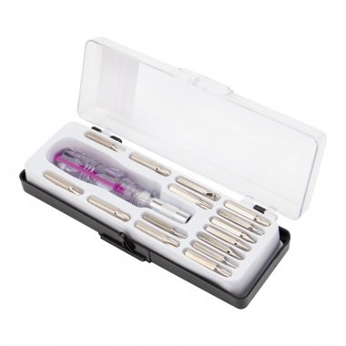 Набор отверток для точных работ + отвертка комбинированная предназначен для выполнения прецизионных работ в электронике и электромеханике, а отвертка комбинированная поможет вам в монтаже/демонтаже крепежных соединений.Биты набора выполнены из хромованадиевой стали.Эргономичная двухкомпонентная рукоятка отвертки делает работу с инструментом легкой и удобной.Магнитный держатель обеспечивает быструю замену и надежную фиксацию насадок.В набор входит: Отвертка для точных работ – 1 шт.Биты – 15 шт. (PH00, PH0, PH1, PH2, T5, T6, T7, T8, T9, T10, T15, U4, ⊙, SL2, SL3)Отвертка комбинированная – 1 шт. (Длина: двухсторонний стержень 120 мм; Шлиц: PH 2, SL 6; Прозрачная рукоятка)