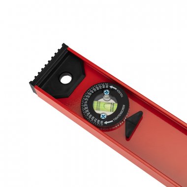 Модель оснащена тремя пузырьковыми глазками для проверки отклонений по горизонтали и вертикали. Один из глазков – поворотный, что позволяет использовать уровень для выставления произвольных углов.