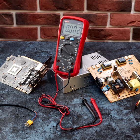 В комплект поставки входят: мультиметр, мануал, батареи, щупы, термопара.