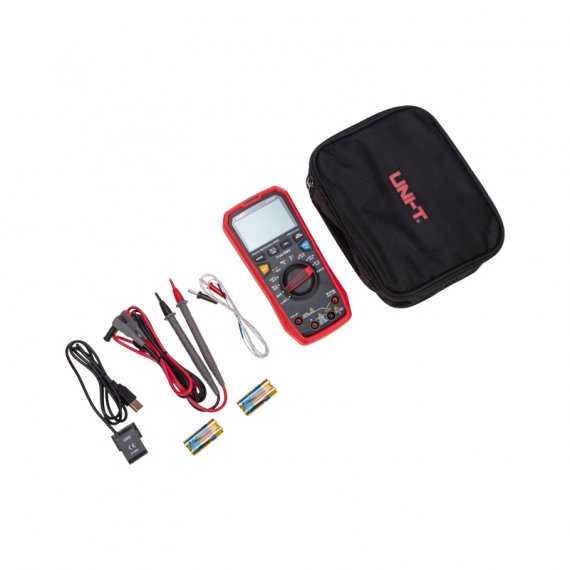 Комплектация: мультиметр, позолоченные щупы, термопара, кабель USB с переходником к мультиметру, батарея, инструкция по эксплуатации, программное обеспечение и инструкция по его установке.