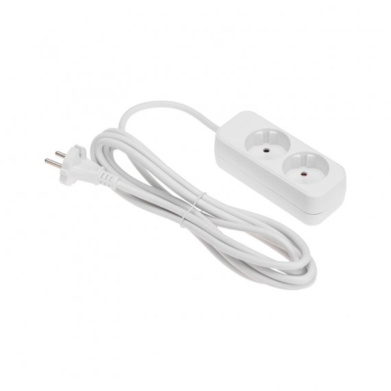 Мощность – 2200Вт. Сечение провода – 2х1,0мм². Тип вилки – прямая. Цвет удлинителя – белый.