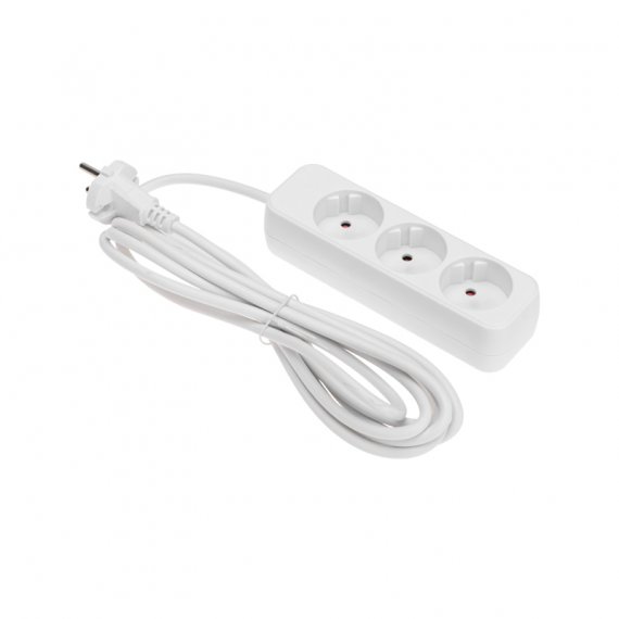Мощность – 2200Вт. Сечение провода – 2х1,0мм². Тип вилки – прямая. Цвет удлинителя – белый.