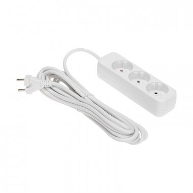 Мощность – 2200Вт. Сечение провода – 2х1,0мм². Тип вилки – прямая. Цвет удлинителя – белый.