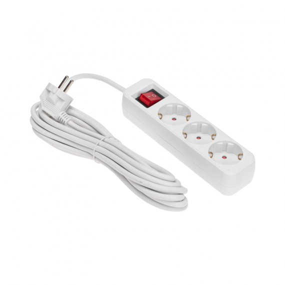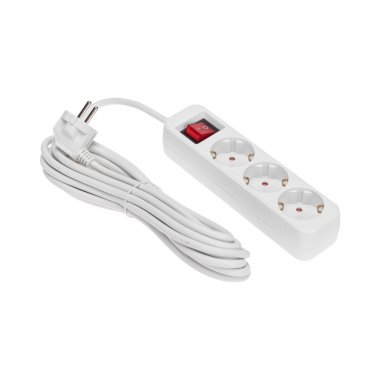 Мощность – 3500Вт. Сечение провода – 3х1,0мм². Тип вилки – угловая. Цвет удлинителя – белый.