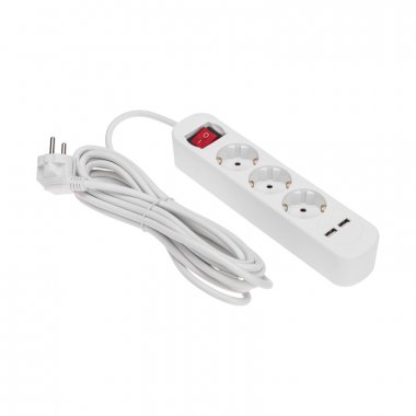 Мощность – 3500Вт. Сечение провода – 3х1,0мм². Тип вилки – угловая. Цвет удлинителя – белый.