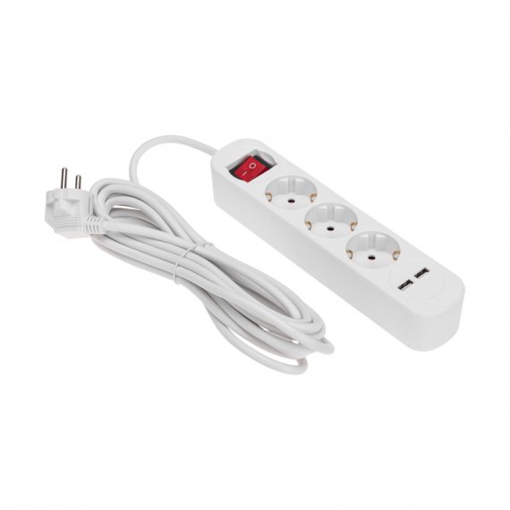 Удлинитель STANDARD 3 гнезда, 5м, 3х1,0мм?, с/з, с выключателем, 2 USB, белый REXANT