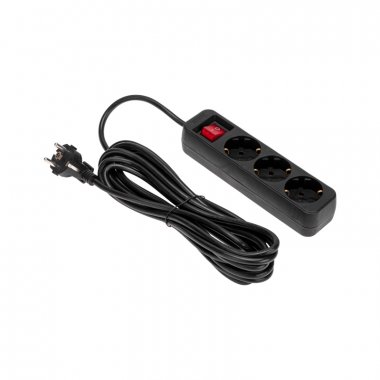 Мощность – 3500Вт. Сечение провода – 3х1,0мм². Тип вилки – угловая. Цвет удлинителя – черный.