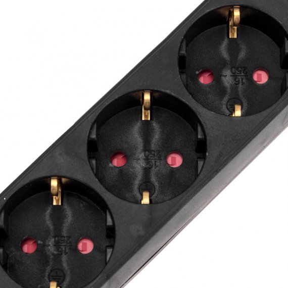 Удлинитель оснащен защитными шторками, которые предназначены для предотвращения случайного попадания пыли, влаги или посторонних предметов в гнезда удлинителя, что способствует долговечности самого устройства и подключенных к нему приборов, а также обеспечивает защиту от поражения электрическим током.