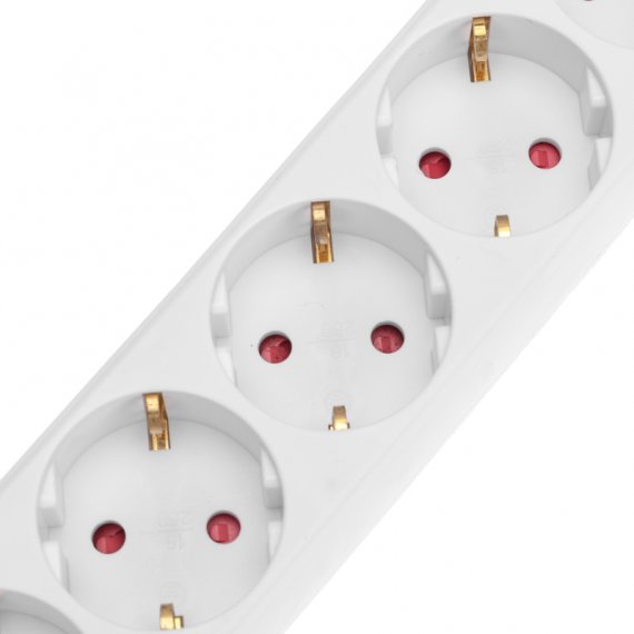Удлинитель оснащен защитными шторками, которые предназначены для предотвращения случайного попадания пыли, влаги или посторонних предметов в гнезда удлинителя, что способствует долговечности самого устройства и подключенных к нему приборов, а также обеспечивает защиту от поражения электрическим током.