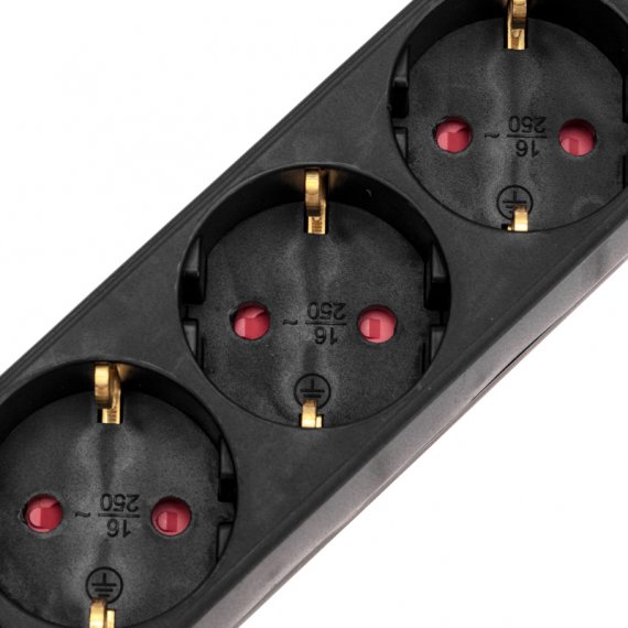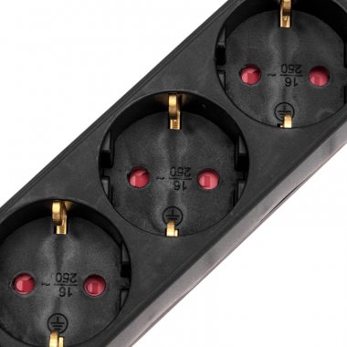 Удлинитель оснащен защитными шторками, которые предназначены для предотвращения случайного попадания пыли, влаги или посторонних предметов в гнезда удлинителя, что способствует долговечности самого устройства и подключенных к нему приборов, а также обеспечивает защиту от поражения электрическим током.
