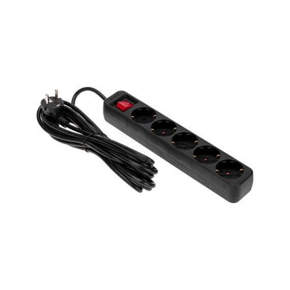 Удлинитель STANDARD 5 гнезд, 5м, 3х1,0мм?, с/з, с выключателем, черный REXANT