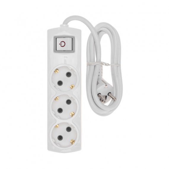 Удлинитель PREMIUM 3 гнезда, 1,5м, 3х1,5мм?, с/з, с выключателем, белый REXANT