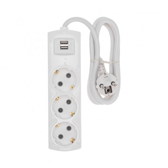 Удлинитель PREMIUM 3 гнезда, 1,5м, 3х1,5мм?, с/з, 2 USB, белый REXANT